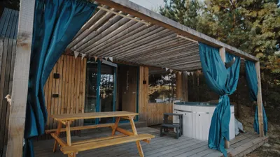 Домик с сауной и джакузи у водоема
